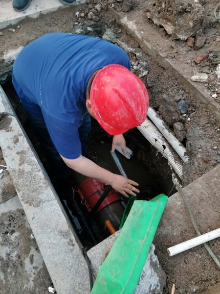近日,楊公路一處公廁管理單位致電公司反映,其所管理的公廁突然無水。接報后,管網部韓經理和維修員張波立即前往查看。韓經理有多年豐富的維修經驗,對地下管線比較了解,經現場勘察,楊公路公廁原用水是從黃河灘被廢除的供水主管網接入的,由于主管網被斷水導致無水使用。若想重新接入自來水,可以選擇從公園一號頂管重新拉入供水管網,但此舉必然造成時間和費用等成本的增加。為盡快解決問題,韓經理和維修員又對附近的管網再進行查找,終于在宿遷學院附近找到一條PVC160主供水管網,從此管道破口接入支管道,雖然距離較長、成本較高,但施工速度會相對較快。在向公司匯報后,管網部立即著手施工,經過一系列緊鑼密鼓的安裝,一條長300米的PE63支管道僅僅用2天時間就順利完成,相較正常施工時間縮短了一半左右。