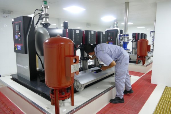 每年的高峰供水來臨前,宿遷銀控自來水有限公司都會制定詳實的設備保養、維護、改造計劃,確保各項設備運行狀況良好,同時要求,在高峰供水期間,每日要對機組進行加密巡檢,特別是對易產生高溫運轉的設備進行專項養護。目前該公司需檢測、檢修的主要、重要設備遍布于兩個水廠、7座泵站共一千多臺,工作人員根據片區,不間斷進行巡查。除了點巡檢,機電設備部所有人員排班進行夜間值班,保證24小時在廠,出現設備問題立即解決,保障生產安全。