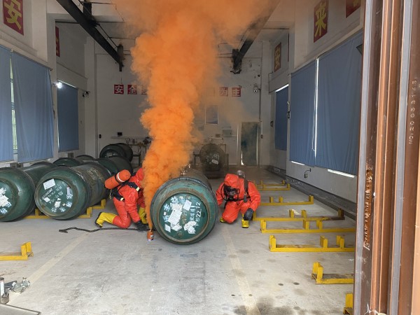 環境質檢組根據當時風向、風速,判斷擴散的方向與速度,并對泄漏下風擴散區進行觀察,及時向指揮部匯報。安全警戒組在二道門處設卡,禁止無關人員、車輛入內,同時在事故現場周圍拉起警戒線。事故現場處置組身穿防化服,頭戴正壓式呼吸器,攜帶堵漏工具進入氯庫,進行堵漏。5分鐘后,堵漏完成,人員出庫向指揮部匯報堵漏情況。伴隨著環境質檢組的報告,周邊30米內空氣質量正常,氯庫內氯氣濃度降至0.2PPM以下,事故風險已經完全消除!