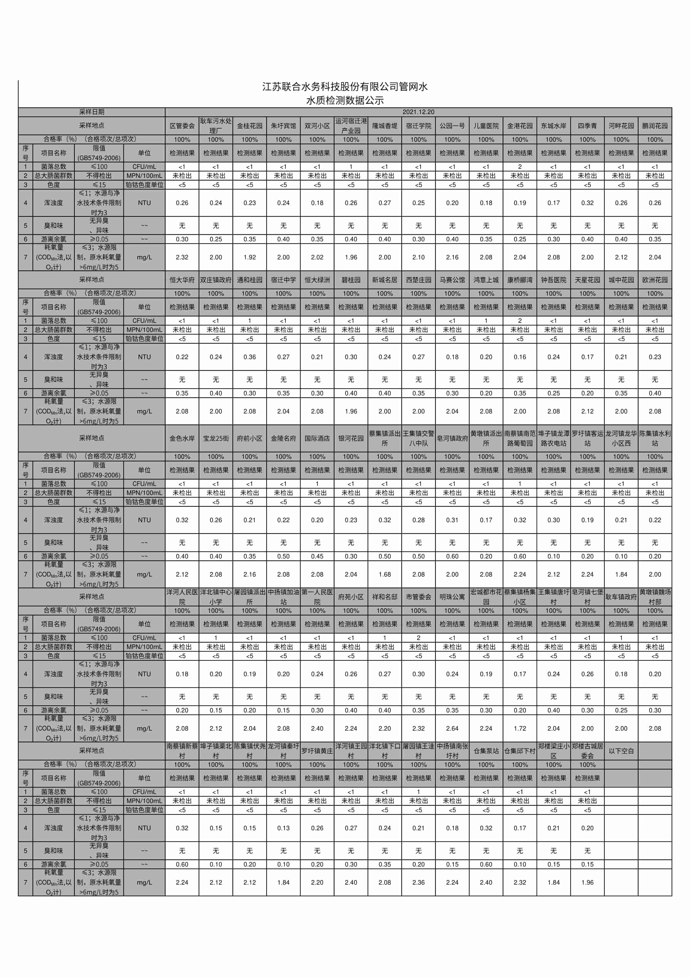 管網水半月檢報告(2021年12月下半月)