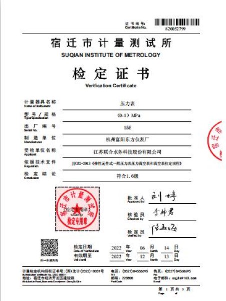 近期,水表檢定中心對在用壓力表開展年檢認證工作,壓力表年檢認證旨在為水表檢定提供安全保障,確保水表檢定過程壓力平穩(wěn),確保計量誤差準確。按照年檢認證計劃此次送檢壓力12只,6月13完成網(wǎng)上強檢申請,6月20日宿遷市計量測試所完成壓力表強檢認證,經(jīng)過檢定12壓力表強檢合格,6月27日水表檢定中心完成2022 年壓力表年檢認證工作。