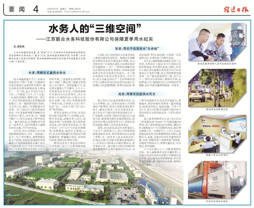 立于民生基石之上,不斷延展服務空間。進入高峰保供水的關鍵時期,江蘇聯合水務科技股份有限公司繃緊安全生產弦,通過強化各項保障措施,夯實設備運行基礎,著力提升供水品質,保障居民用水安全。
