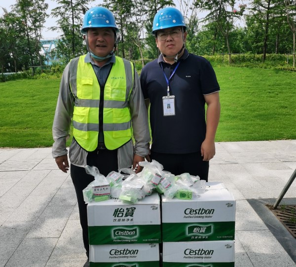 一箱箱防暑物資雖然不能完全消除夏季的高溫燥熱,但現場施工人員也深切感受到了公司領導的親切關懷。高溫施工雖然辛苦,但是他們始終以昂揚的奮進姿態,在供水道路上闊步前進。