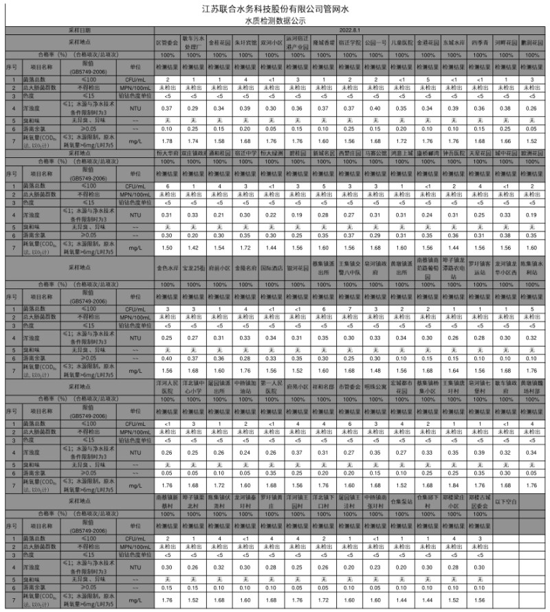 管網水半月公示(2022年8月上半月)