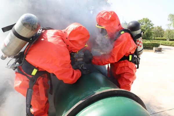 (圖:液氯鋼瓶堵漏隊(duì)對液氯鋼瓶泄漏點(diǎn)進(jìn)行堵漏)