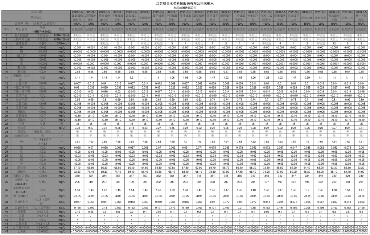 末梢水月檢公示(2023年9月)