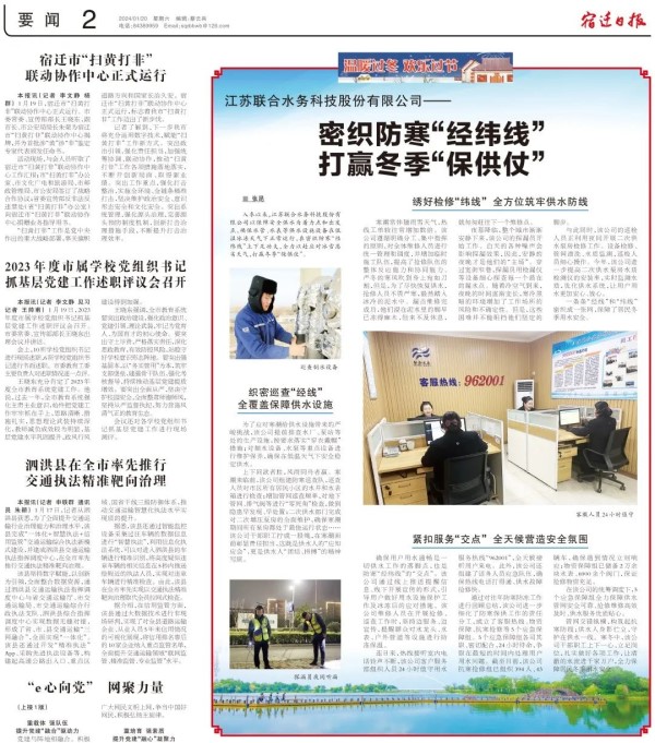 入冬以來,江蘇聯(lián)合水務(wù)科技股份有限公司以保障安全供水為著力點(diǎn)和出發(fā)點(diǎn),確保水管、水表等供水設(shè)施設(shè)備在低溫冰凍天氣下正常運(yùn)行,在密織防寒“經(jīng)緯線”上下足功夫,全力以赴應(yīng)對冰雪惡劣天氣,打贏冬季“保供仗”。