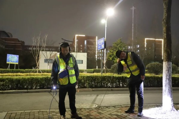 夜幕降臨,整個城市漸漸安靜下來,該公司的探漏員開始工作。白天的各種噪聲會影響探漏效果,因此,安靜的夜晚才是他們的“主場”。穿過寬街窄巷,探漏員用檢漏儀等設(shè)備細(xì)心探查每一個潛在的漏水點(diǎn)。隨著冷空氣到來,夜晚的時間逐漸變長,寒冷黑暗的環(huán)境增加了工作場所的風(fēng)險和不確定性。但是,這些困難并不能阻擋他們堅(jiān)定的腳步。