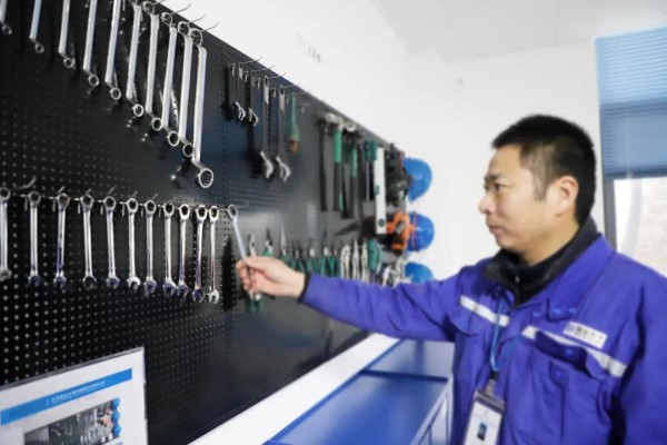 機電人很少有時間能坐在辦公室,他們更多的是與設備為伍,工作服經歷過一場場維修后留下了深淺不一的印跡,在他們的維修間內,分門別類整齊地擺放著各種維修工具,機電人對于它們各自擺放的位置了然于心,維修工具雖然冰冷,但整潔有序的擺放也能給人帶來愉悅之感。