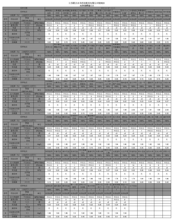 管網水半月公示(2023年12月下半月)