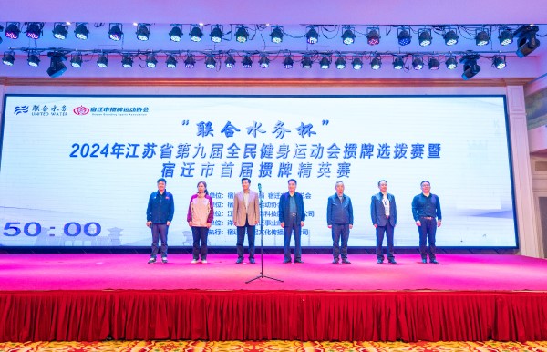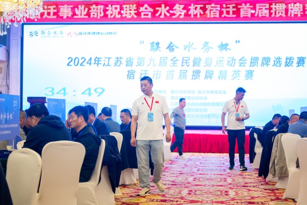 春意濃濃百花開,4月21日,“聯合水務杯”2024年江蘇省第九屆全民健身運動會摜牌選拔賽暨宿遷市首屆摜牌精英賽在美麗的駱馬湖畔火熱開賽,眾多摜牌高手在比賽中進行了技藝與智慧的巔峰較量。本次摜牌比賽在江蘇省摜蛋運動協會的指導下,由宿遷市體育局、宿遷市體育總會主辦,宿遷市摜牌運動協會承辦,江蘇聯合水務科技股份有限公司冠名。