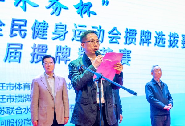 聯合水務江蘇區域總經理、宿遷市摜牌運動協會副會長曾真先生對此次出席活動的領導嘉賓以及報名參賽的運動員致以最熱烈的歡迎和感謝,并發表開幕致辭,他表示,聯合水務與摜牌選撥賽在美麗的駱馬湖畔相遇,既是“水韻江蘇”和“水惠民生”兩張名片的魅力疊加,也是水務品牌與文化運動項目的融合聯動。
