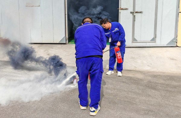 本次演練模擬壓泥機房發生火災,主要針對人員疏散、滅火處置、應急檢測等方面進行現場演練。演練正式開始后,全員立即進入應急狀態。壓泥機房一樓大門處發生火災,壓泥機房值班人員確認火情后立即疏散人員,撥打119報警電話,并通知應急指揮部。應急指揮部根據事故情況啟動IV級突發環境事件應急響應。應急小組多措并舉,現場處置組確認廠區雨水井閥門處于關閉狀態,相關人員啟動應急池的應急排污泵,同時清理事故現場,確保消防廢水全部流入應急池。半小時后,對應急池內廢水進行檢測,檢測合格,本次演練圓滿完成。