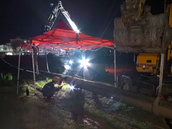 為有效解決陳集鎮低壓片區水壓問題,公司決定從洋河紅廟大橋片區所預留的DN400閘閥后方延伸管道,頂管橫穿古黃河,并與陳埠線DN300管道進行對接,以實現對該區域的加壓。此舉將大大提高該區域的水壓穩定性,為確保能在夏日高峰期前正常供水,工程管理部多次加班加點進行夜間施工,目前工程已順利完成并進行并網供水。