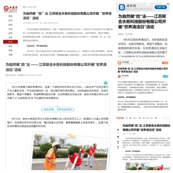 9月20日是“世界清潔地球日”。每一抹綠意,都關(guān)乎你我。聯(lián)合水務(wù)積極舉辦活動(dòng),弘揚(yáng)文明新風(fēng),助力營(yíng)造干凈整潔、和諧美麗的環(huán)境。