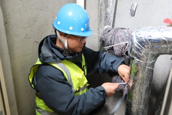 雖然今年冬季氣溫較往年偏高,但供水人始終繃緊防寒保供這根弦,不敢懈怠。提前部署,迅速行動,是打贏防寒保供這場“攻堅戰”的制勝法寶。10月中旬,公司客服部抄收班針對各自抄收片區的水表、供水管線、水表箱蓋等設施進行一一排查、維護,守好防寒保供第一道關;11月,管網部重點排查往年凍損嚴重小區,提前對供水設施保溫情況開展查漏補缺,對老舊小區、村組水表保溫加固近5萬戶。在廠區內,供水設施的防凍保溫工作也在緊鑼密鼓地進行著,機電設備部提前對水廠臭氧投加管道、自用水管道等戶外重要供水管道重新進行保暖施工,公司通過對水源地、水廠、泵站等重點供水設備設施采取“穿衣戴帽”的方式進行防凍保溫,保障生產安全。在會議室,一場場防寒保供會議如期召開,會上分析了歷年搶修工單、易凍損區域分布、實施主體和責任落實情況,進一步完善冬季供水設施的防寒保暖工作。