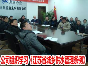 2月16日下午,公司組織各部門主管以上人員及骨干等28人共同學習《江蘇省城鄉供水管理條例》。本次學習由人事行政總監柴亞東主講,主要學習了條例中有關水源、水質、應急供水、二次供水等條款內容。夏承光總經理要求參會人員不僅要身體力行加以學習,同時,還要帶動身邊人員共同學習,以確保《江蘇省城鄉供水管理條例》及時傳達到位和貫徹實施;3月底前,人事行政部對學習情況進行一次測試,各部門考核重點不同,要結合部門工作實際特點;對照《江蘇省城鄉供水管理條例》的要求,檢查我公司還有那些差距,6月底前整改到位,如不能及時整改的要說明情況并制訂整改計劃。