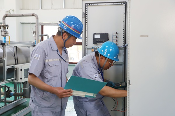 運行班組在5月初便展開設備“全身體檢”,針對夏季高負荷運轉特點,重點對取水泵房機組、加氯系統、送水泵房等核心設備進行深度維保。技術人員采用室內測溫儀監測電機、配電柜的運行溫度,更換老舊閥門,升級配電柜散熱系統,確保設備在40℃高溫環境下仍能保持95%以上運行效率。