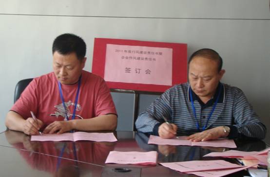 此外,夏總還與相關領導簽訂了《加強和改進企業作風建設責任書》,要求公司從上至下揚風正氣,堅決杜絕“推諉扯皮不作為、交辦工作拖拉甚至久拖不辦、紀律松懈自由散漫、甘于現狀不思進取、不講奉獻個人主義、工作不力”六大作風弊端。嚴格遵守宿遷市機關作風 “六條禁令”等內容,嚴格執行各項管理制度,加強自身建設,推動行風工作。