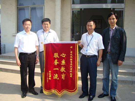 5月17日上午,宿遷學院后勤處處長王志成一行四人為公司送來錦旗,真誠感謝公司快捷、優質、人性化的服務。(人事行政部