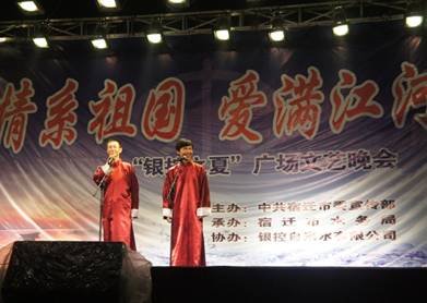 8月27日晚,為慶祝建黨90周年,宿遷市人民廣場(chǎng)隆重舉辦了 “《情系祖國(guó),愛(ài)滿江河》——銀控之夏”大型文藝活動(dòng),宿遷市副市長(zhǎng)田洪、秦正寶出席了出席活動(dòng),宿遷市水利系統(tǒng)及宿遷銀控的大部分員工到場(chǎng)觀看。