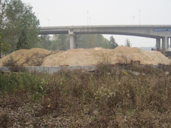 圖二:管線上方的沙廠(順著墻體方向在沙子下方)。
