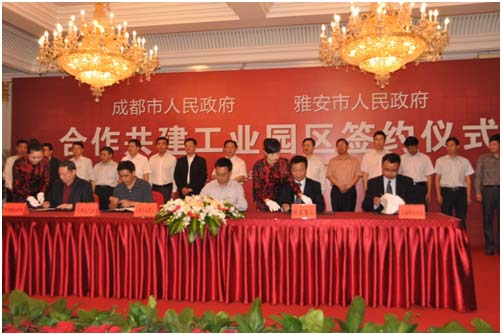 據悉,成雅工業園區是按照四川省委、四川省政府加快區域合作發展要求和《成都經濟區區域合作框架協議》精神,由成都、雅安兩市政府合作共建的綜合性產業園區。園區起步區規劃3平方公里,重點發展電子信息、機械制造、表面處理和礦產資源深加工,承接成都市產業轉移和輻射,為成都市相關產業及重大項目配套。園區將按照“兩化互動、產城一體”理念規劃建設,實現產業和城市同步發展,力爭建設成為成都消費類電子產業配套園區和天府新區配套產業基地,成為四川省區域合作示范區和成都經濟區西部產業聚集能力強、二三產業和生態協調發展的工業新城。