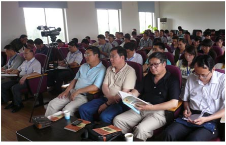 5月25日下午3:00,宿遷銀控自來水公司員工活動室內座無虛席。由市文廣新局主辦,市圖書館和宿遷新聞網承辦的“宿遷文化講壇”活動首場進企業講座即將在這里舉行,市圖書館、宿遷日報等媒體,宿遷銀控自來水有限公司領導、員工等近70名聽眾欣喜地等待著,講座由市政協李志宏副主席主持,中國教育學會會員、江蘇省教育學會理事、高級講師蘇輝先生以《閱讀奠基人生,知識改變命運》為主題拉開活動序幕。