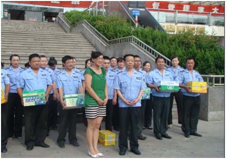 724號中午烈日當空,客服部經理郁莉等一行受公司領導委托,來到義烏商貿城慰問工作在數字化城管第一線的信息采集員,給他們送去飲料與純凈水等慰問品。對他們在高溫酷暑中堅守在城管工作第一線,為維護宿遷城市的美好形象所付出的努力表示敬意。同時,也關切地提醒他們做好防暑降溫工作,勞逸結合,在為城市發展做貢獻的同時,要確保平安健康。