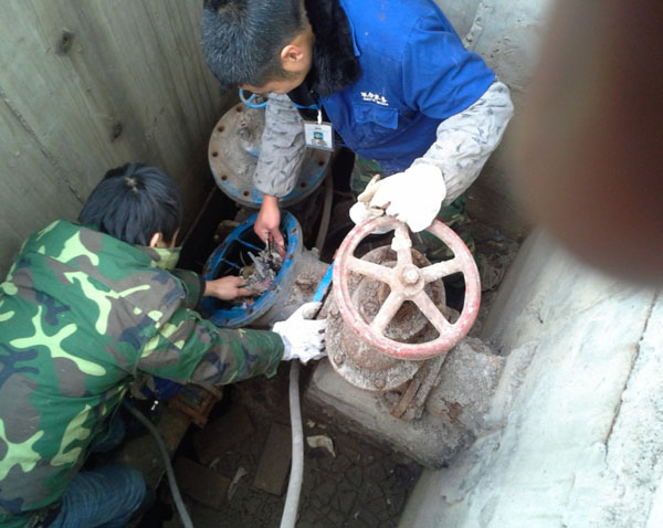 近期,一水廠四萬噸斜管沉淀池排泥流量與往日相比較小,影響排泥系統(tǒng)正常工作。調(diào)度中心工作人員隨即對(duì)排泥管道進(jìn)行檢查,發(fā)現(xiàn)造成流量減小的原因很有可能是角式隔膜式排泥閥堵塞。原因確定之后工作人員立即對(duì)角式隔膜式排泥閥進(jìn)行拆卸,發(fā)現(xiàn)其內(nèi)部已被雜物嚴(yán)重堵塞,由于堵塞雜物較多,清理難度大。工作人員只能用手一點(diǎn)一點(diǎn)將其清理,經(jīng)過半個(gè)多小時(shí)的清理終于完成,再次開閥后,流量恢復(fù)正常。