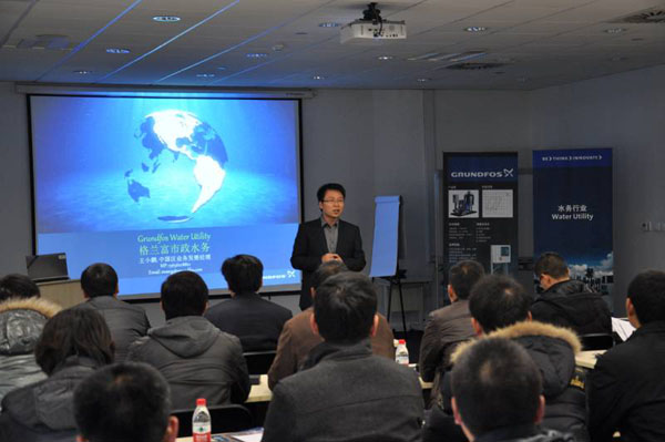 為了更好地開展公司二次供水業(yè)務(wù),12月6-7號, 受蘇州格蘭富廠家的邀約,聯(lián)合水務(wù)下屬宿遷和咸寧自來水公司相關(guān)人員到蘇州參加為期兩天的培訓(xùn),主要內(nèi)容涉及二次供水加壓泵站設(shè)備的了解和安裝。宿遷公司九名員工參加了培訓(xùn)。
