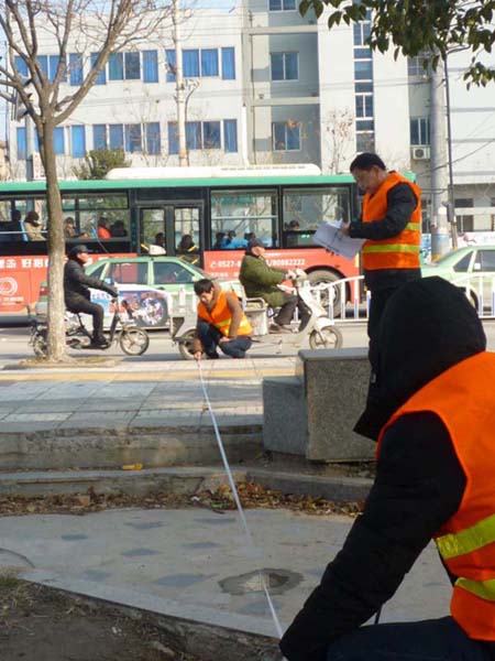 新年伊始,春回大地!管網部管線組全體員工在春節假期結束后的第一天就緊鑼密鼓地開展供水主干網測量和閥門定位、檢查工作。圖為工作人員在進行黃河路段普查,隨著此項工作的持續推進,管線組將對全市供水管網圖進行整合、完善并逐步建立分區供水考核監控體系,對后續管網搶修、工程安裝、產銷差控制、建立管網地理信息管理系統和SCADA測流測壓系統具有重大意義。(管網部 劉君良供稿)