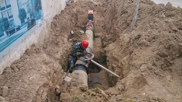 圖為我公司安裝人員在進行洋河區域供水管道與洋河老供水管道并網工作:
