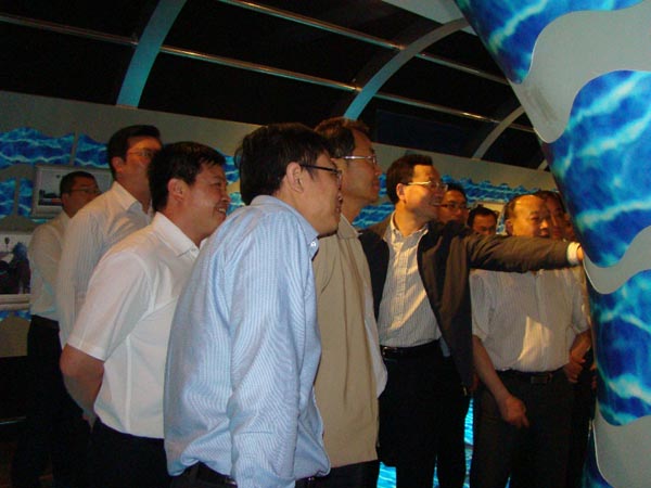 張書記一行首先參觀了宿遷市第二水廠和宿遷市水文化展示館。在展示館內(nèi),張書記認(rèn)真觀看了“論水”、“治水”、“節(jié)水”三個展區(qū)。在聽取了宿遷自來水產(chǎn)業(yè)發(fā)展的詳細(xì)介紹后,他對于水文化展示館的建設(shè)給予了高度評價。張書記說,他在宿遷任職期間,正是自來水公司改制后艱苦奮斗的時期,他目睹了宿遷銀控在成長的道路中遇到的諸多困難,見證了銀控自來水人始終昂揚不息的斗志,雖然他現(xiàn)在已經(jīng)調(diào)離宿遷,但看到宿遷銀控九年不懈努力而取得的成績,他倍感欣慰。