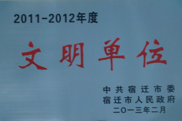 (圖:2011-2012年度宿遷市文明單位榮譽牌)
