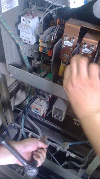 隨后,調(diào)度中心維修人員對變頻柜進(jìn)行了全面詳細(xì)檢查,最終確定確為變頻器的功率模塊損壞。為了第一時(shí)間進(jìn)行修復(fù),在電話向公司領(lǐng)導(dǎo)匯報(bào)后,經(jīng)領(lǐng)導(dǎo)指示緊急啟動設(shè)備搶修預(yù)案,隨即聯(lián)系南京的變頻器維修公司,同時(shí)對故障變頻器進(jìn)行拆卸,并于當(dāng)天下午就被送到了南京維修公司。813日,故障變頻器修復(fù)后立即被運(yùn)回,并安裝調(diào)試正常后投入運(yùn)行。