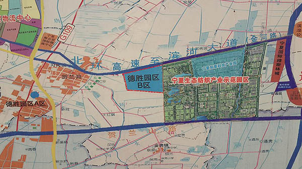 寧夏生態紡織產業示范園區是根據國家發改委正式批準的《寧夏銀川承接產業轉移(生態紡織)示范區實施方案》而成立,這是國家發改委在全國范圍內批準建立的第一個紡織產業轉移示范園區,該示范區還被納入《國家西部大開發“十二五”發展規劃》和《呼包銀榆重點經濟區發展規劃》。作為示范區的核心產業園區,該園區被寧夏自治區政府確定為 “寧夏二號、銀川一號”工程。園區位于銀川市賀蘭縣縣城以東約10公里處,規劃總面積30平方公里。園區將打造從紡織新材料到色紡、色織、服裝、家紡、裝飾、物流等產業一體化、產業鏈完整的生態紡織體系。