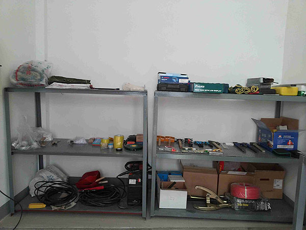 整潔的環境能讓人心情舒暢,也有利于提高工作效率。為了改變傳統工具間臟亂差等問題,同時方便管理、領用工具,耿車污水廠機電部利用建設期剩余材料自己做了工具架和操作臺。別看只有簡單的三層工具架和操作臺,制作起來卻一點也不簡單。主要的工序包括現場丈量尺寸、確定方案、切割下料、焊接、打磨、上防銹漆、上調和漆、晾干等,共耗時一周。