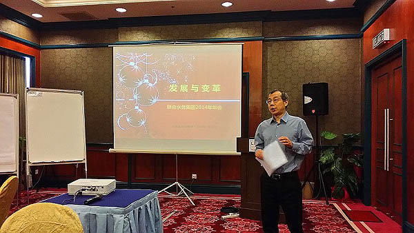 會議最后,俞總進行全面總結。在對國家整體發展形勢看好、行業發展趨勢理清的基礎上,俞總提出,我們必須堅持“聯合水務致力于成為一家GREAT(偉大的)水務公司!”的愿景,堅持聯合水務十年的目標——成為一家優秀的大型水務公司,將目標細化,逐年提升經營業績、擴大社會知名度,不斷發展壯大,成為中國優秀的大型水務公司!2014年,聯合水務還將繼續提升經營效率,解決各運營公司與在建項目的挑戰,成功完成經營目標;其次,將繼續優化組織架構、提升管理水平,為優秀的人才提供職業生涯發展的廣闊平臺;集團總部與各運營公司各司其職,進一步完善集團管控模式;集團將進一步注重人才的培養與發展,制定有針對性的人才梯隊建設與后備人才培養計劃并落實。集團只有具備了合理的組織架構、標準的管理流程等硬件基礎上,并配備恰當的軟件——完善的管理體系與人才培養體系,軟硬件兼備,才能有力支撐集團的進一步發展!