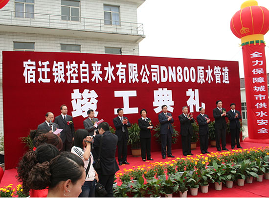 2007年4月28日, 舉行DN800原水管竣工典禮。宿遷市委、市政府、市人大、市政協等主要領導人親臨到賀,對于宿遷銀控自來水有限公司改制之后“供優質之水,服誠信之務”的務實作風給予了肯定。