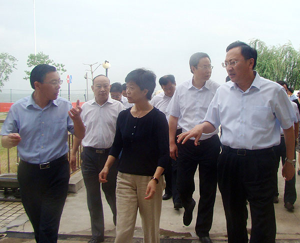 江蘇省副省長許津榮、繆瑞林在宿遷市委書記藍紹敏的陪同下調研宿遷銀控自來水有限公司駱馬湖取水泵站運營情況和生態環境