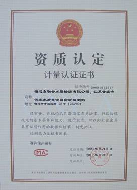 九月八日,宿遷市聯(lián)合水質檢測有限公司、江蘇省城市供水水質監(jiān)測網宿遷站正式通過計量認證的資質認定,并獲得了計量認證證書。這說明聯(lián)合水檢已具備國家有關法律、行政法規(guī)規(guī)定的基本條件和能力,可以向社會出具有證明作用的數據和結果,并且可以使用CMA標徽。(技術部 祁海燕供稿)