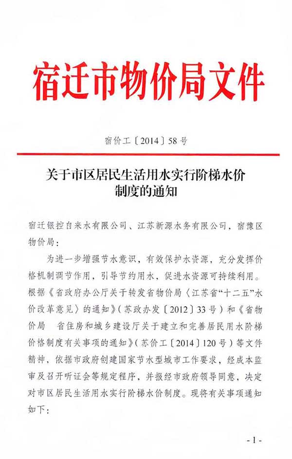 關于市區(qū)居民生活用水實行階梯水價制度的通知