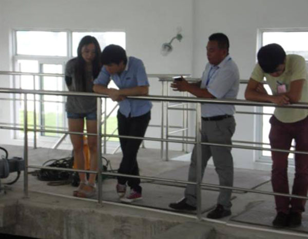(圖2:實習(xí)生們現(xiàn)場參觀濾布濾池設(shè)備)