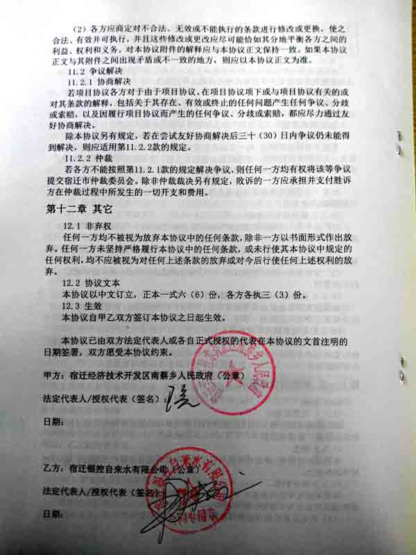 宿遷公司與南蔡鄉(xiāng)簽訂供水合同