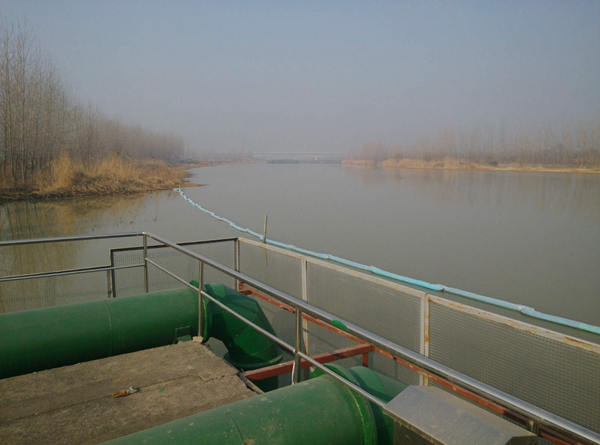 運河泵站始建于1983年,歷經3次改擴建后,目前取水能力8萬噸/天。泵站裝機4臺,3用1備,單臺機組額定功率132kw,額定流量1100m3/h,總裝機容量為640kw,通過2條DN800和1條DN500管道向一水廠輸送原水,管線單程1900米。2009年中心城區啟用駱馬湖水源地后,中運河泵站即作為備用水源地。由于建設年代較長,啟用頻率較低,站內設施和環境相對較差,尤其是取水口的兩邊,因運河泥沙較多,加之水流方向受到駱馬湖排水和南水北調的影響經常出現變化,造成取水頭部淤積了大量的泥沙,對取水水質和泵站環境造成了較大的影響。