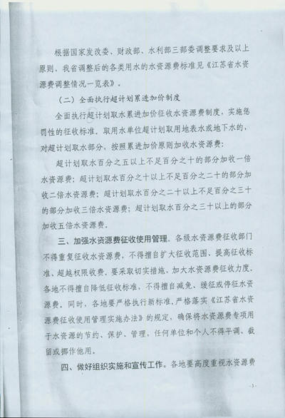 2015年2月26日,江蘇省物價局、江蘇省財政廳、江蘇省水利廳三家單位聯合下發《關于調整水資源費有關問題的通知》蘇價工[2015]43號,文件中明確指出保護地下水資源重要性、緊迫性,并對水資源費作了大幅度調整。省里這一重大舉措,明確了表明了江蘇省對地下水資源保護的重視。針對這一指導性的方針,宿遷公司將統籌計劃,認真學習有關政策,落實違章永井戶的統計,切實做好水資源的保護。