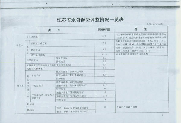 (圖2:江蘇省水資源費調整情況一覽表)