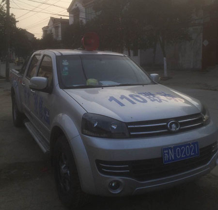 (圖1:皮卡車安裝喇叭播放宣傳通知)