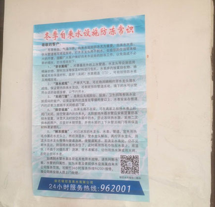 (圖2:張貼冬季自來水設(shè)施防凍常識(shí)海報(bào))